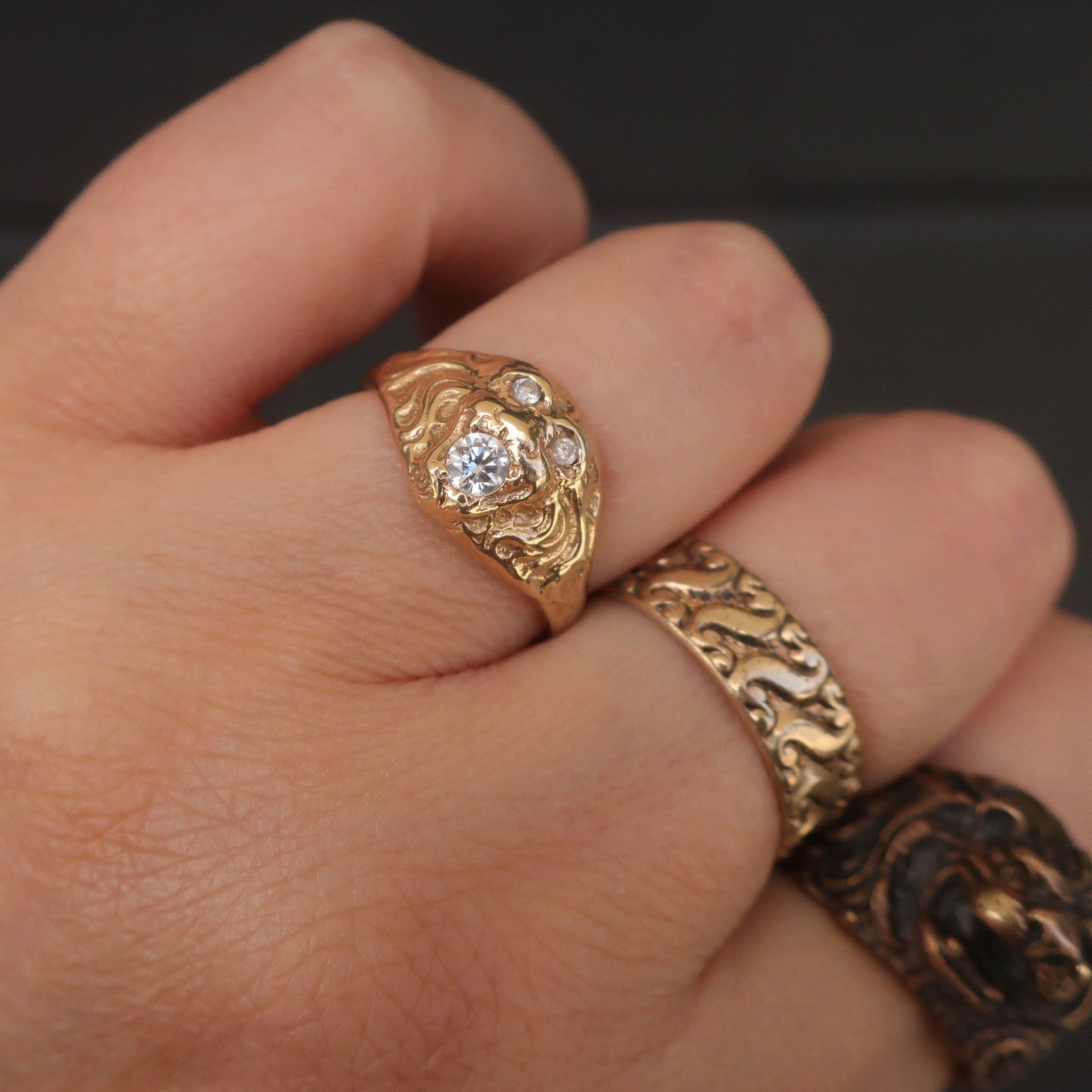 Edwardian 14kt Gold Tiger Ring with Diamond