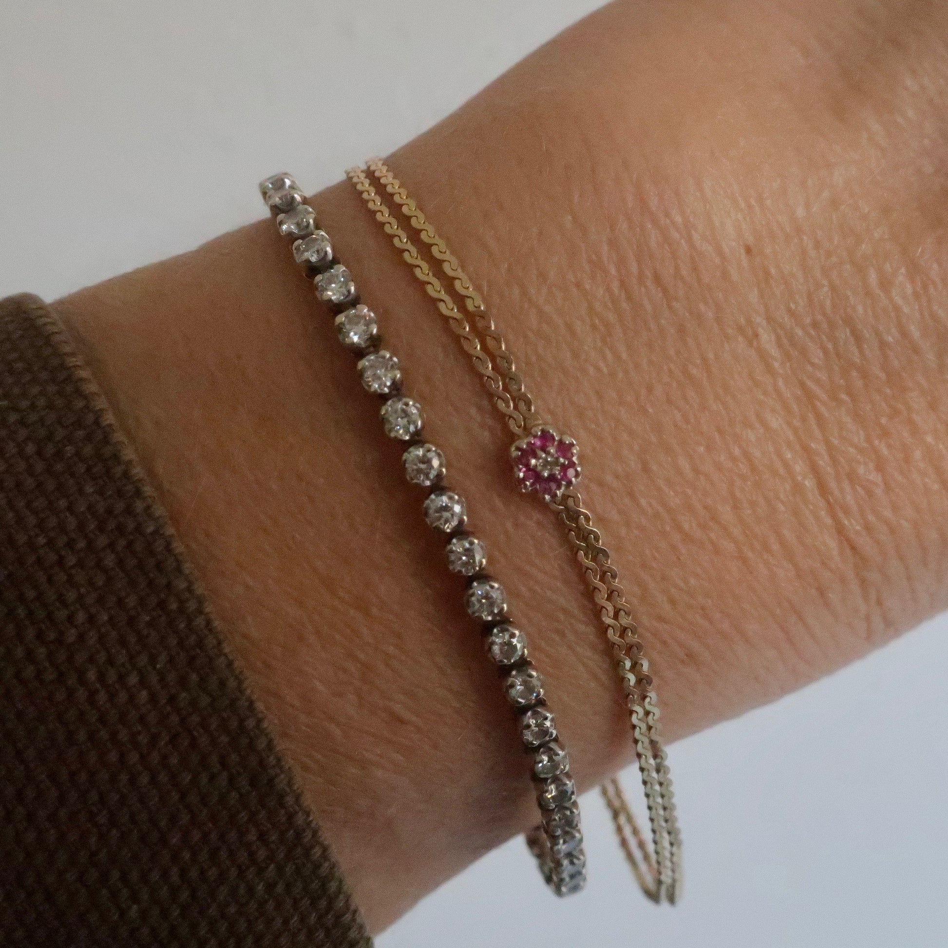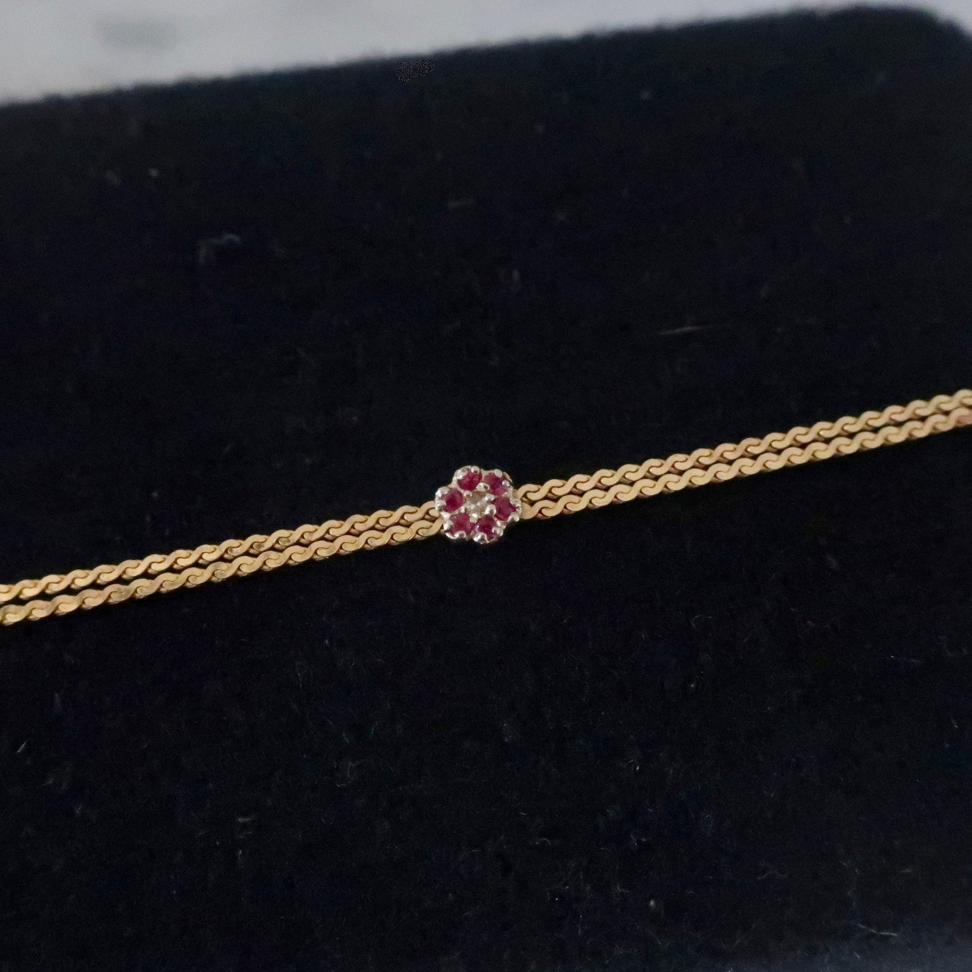 Vintage Delicate Ruby Diamond Flower Bracelet